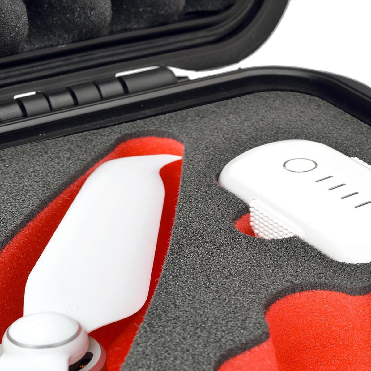 The case is impact and drop resistant, corrosion resistant, and features a neoprene seal that when properly closed is designed to keep the case watertight and your Phantom gear protected even if submerged in shallow water. A release valve allows you to equalize air pressure when travelling between different elevations.
