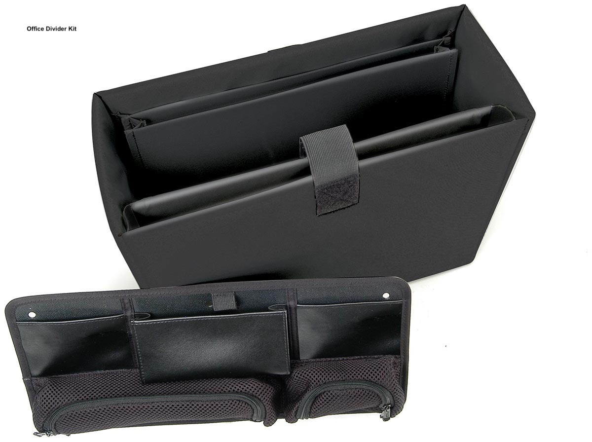 - First is the 'Office Dividers and Lid Organiser', this is a padded divider set which holds a Computer and A4 files with a Lid Organiser with pockets for smaller items.