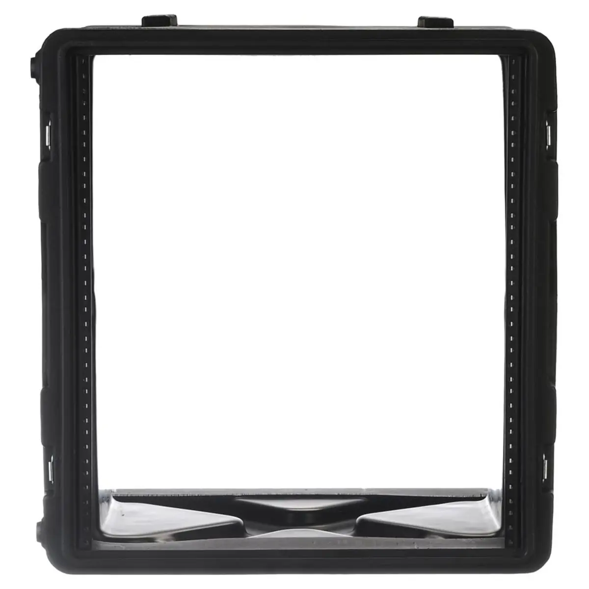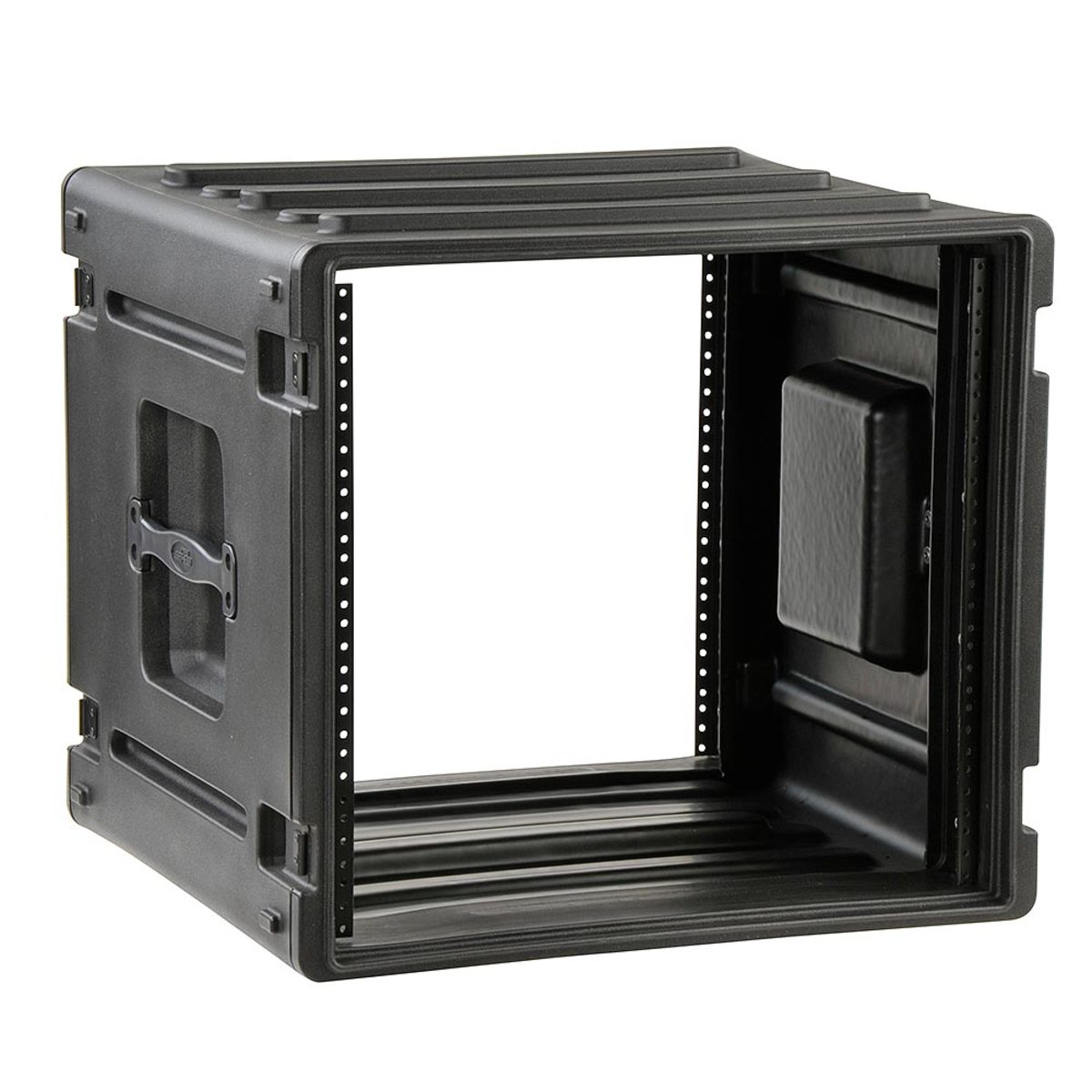 The SKB 1SKB-R10U Roto Rack also comes standard with steel Mil-Spec black twist latches which are recessed for extra durability and longevity, new heavy-duty flush handles, and front and rear rack rails with a rack depth of 17.6” (44.70cm).